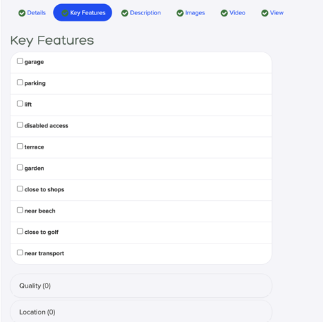 Si vous téléchargez manuellement des propriétés, vous pouvez sélectionner les caractéristiques correspondantes dans la section « Caractéristiques clés » :