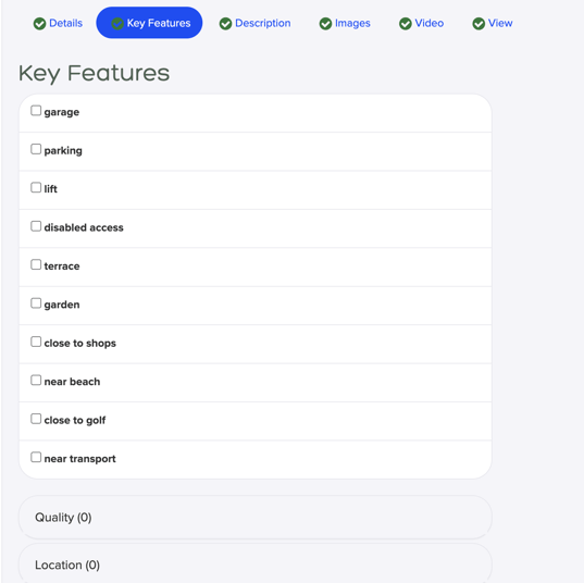 If you are uploading manually, you can tick any corresponding features in the "Key Features" section:
