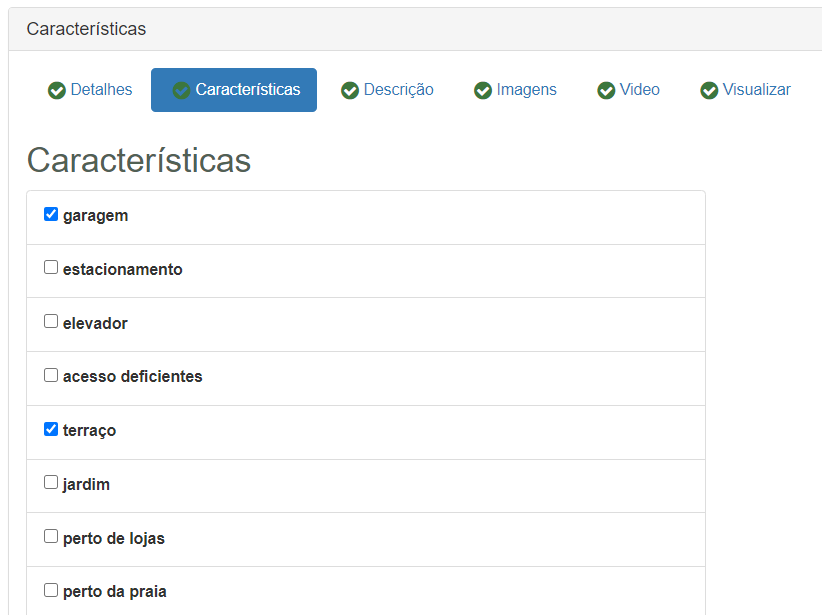 Para adicionar as características manualmente, por favor entre no seu o painel de controle de Kyero (faça o login aqui). Na guia Imóveis, escolha um imóvel e clique em Editar. Em seguida, vá para a guia Características, onde pode marcar as caixas correspondentes às expressões que descrevem o seu imóvel.