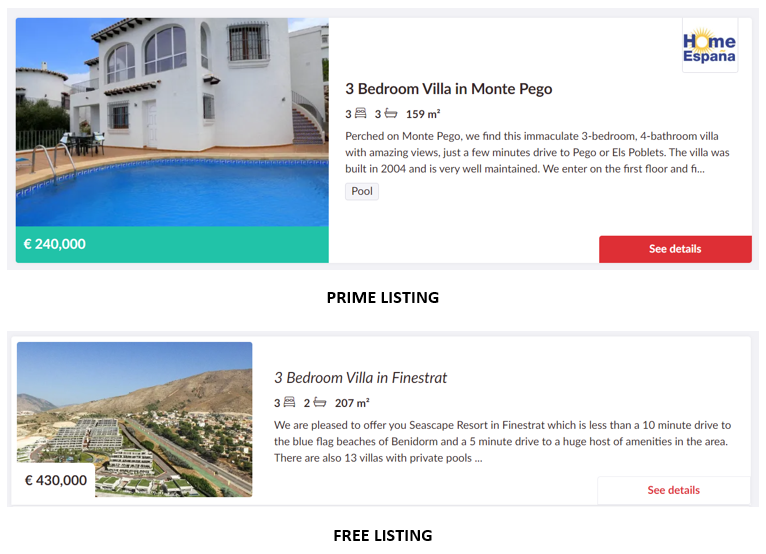 Perguntas freqüentes sobre o que são os Prime Listings e como configurá-los no Kyero.com.